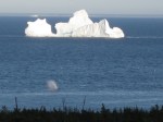 - Icebergs in Red Bay Labrador. Notice the whale spout in the foreground.