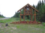 Time passed very quickly even though by this time we were in and out of rain showers.  Before we knew it we made it to the greeting sign for Goose Bay and Happy Valley.  It had stopped raining for the moment and it gave us the opportunity to take some pictures in front of the sign as evidence that we had made it.  Someone had left a marker of their achievement as well and built a rock man figure to the left of the sign letting all others know that people they had been there previously. and now so had we.