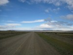 Once on Routa 40, we rode many miles in two tire track ruts surrounded somewhat deep gravel. The road was straight as an arrow, as far as the eye could see, with scraggy brush extending to both sides of the horizon. First it was brown and as we headed south, it became greener and greener. It was easy going, but it was a bit mesmerizing and if we weren’t careful, we could find ourselves wandering out of the tire tracks and in the deeper gravel. That itself wasn’t really bad, but the wind was well and truly up which made recovery from the gravel all the more difficult.