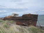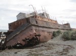 Back on the pavement we paralleled the coast for a while and passed a few small towns which had been abandoned. The buildings were still in pretty good shape, but to townspeople had apparently moved on in search of something better. It was a bit of a strange feeling seeing all these buildings, it good condition, and not a soul around. Not far from he abandoned town, we came across an even more unusual scene. Just outside of the last town we passed not even totally out of the water, lay the hulls of two ships.