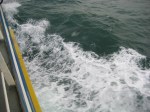 At first we saw nothing. Jeez, here we were standing in the wind and cold spray for what? But then, someone pointed at the water and I caught a glimpse of something. At first it was a darkish blur gliding through the water alongside the ferry. It looked like the reflection of a cloud on the surface of the water, but it was moving with amazing speed and zigzagging through the water.