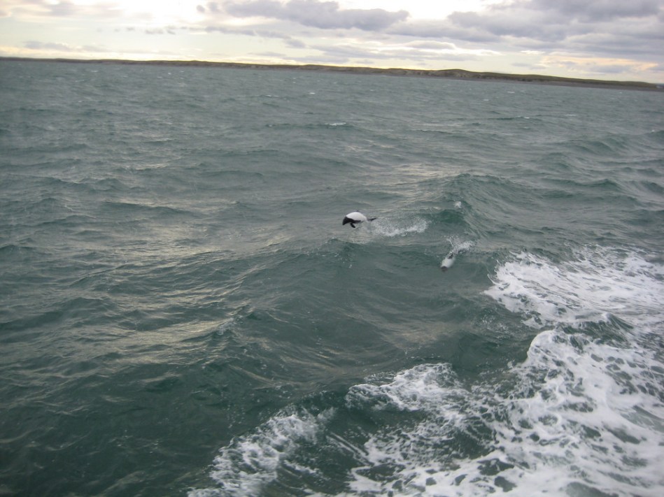 Commerson’s dolphins lead the way to Tierra del Fuego.