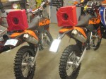 Thus began the quest to develop a standby fuel storage system for our two wheeled transportation. KTM did not make anything and even the aftermarket had nothing to fit the little KTMs. Double drat! So I went about my way to quickly find a portable fuel container to put on the bikes with less than a week before blast off. My head was spinning. There was little time for mail order and we needed whatever solution fitted on the bike and ready to go in less than a week.