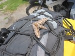 As we prepared to mount our bikes, Kim found that she had a visitor and it looked like he wanted to get a drink too.  A three inch wide moth walked his way over the top of Kim’s gear and nestled himself (or herself) up against Kim’s water bottle.  It looked like he was settling in for the ride and slaking his thirst before we departed.  We tried to give him a little motivation to be on his way but he decided he wasn’t going anywhere but with us.  Ultimately, we had to remove the little guy by hand and send him on his way so we could get started towards the hotel.