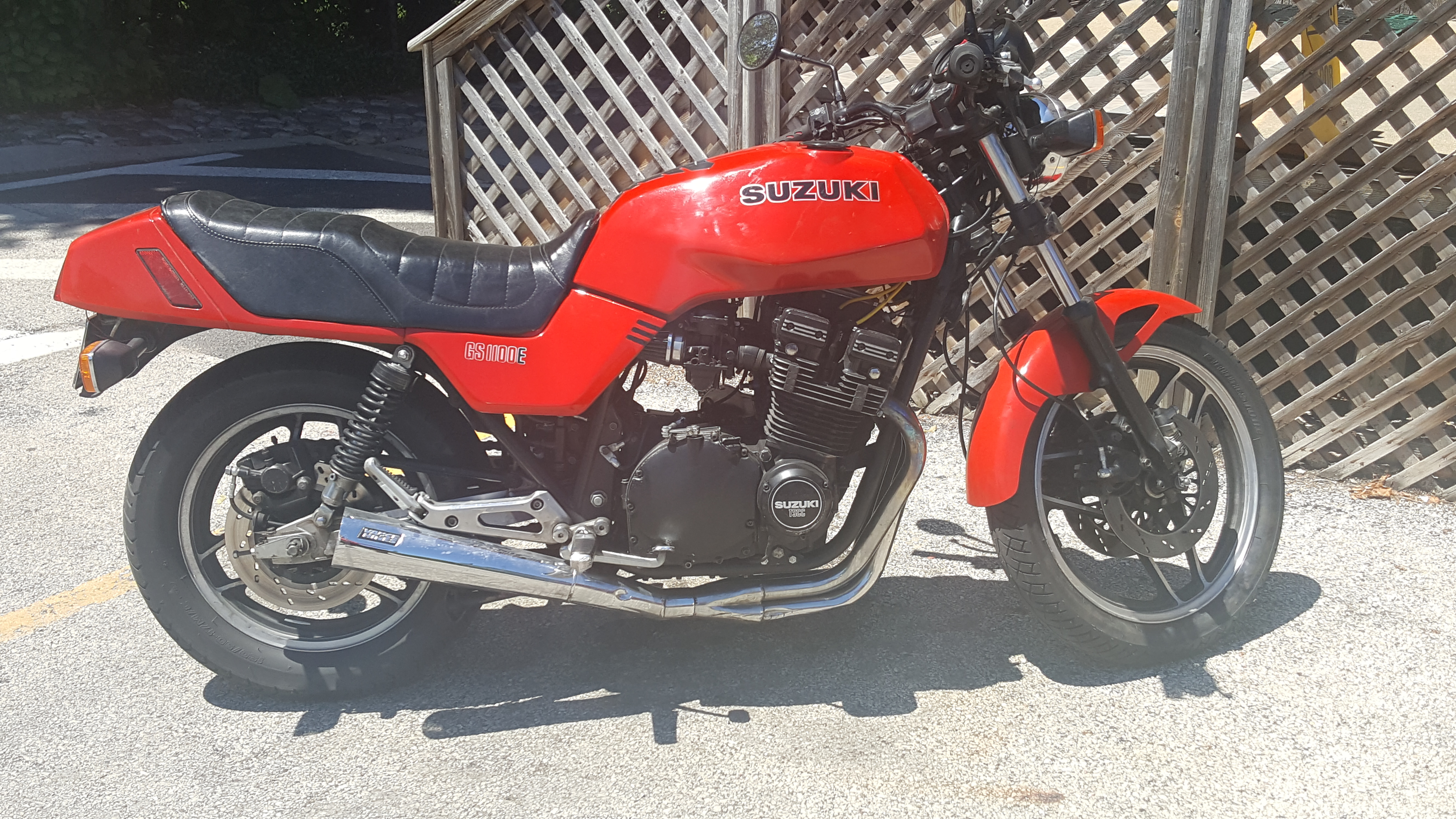 As we were walking around Libertyville, IL, we spotted this beauty. I owned the same bike, a 1982 Suzuki GS1000E back in the day, even the same color.