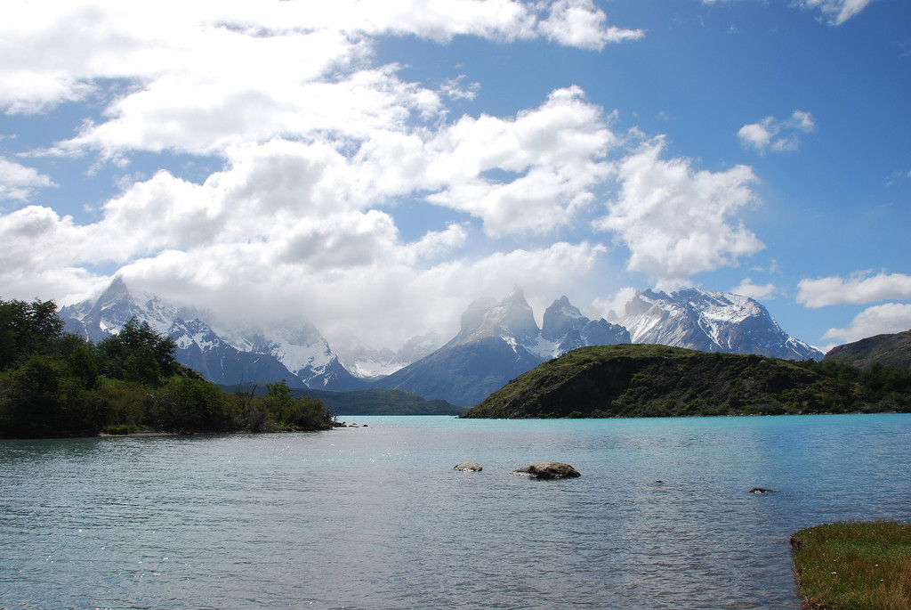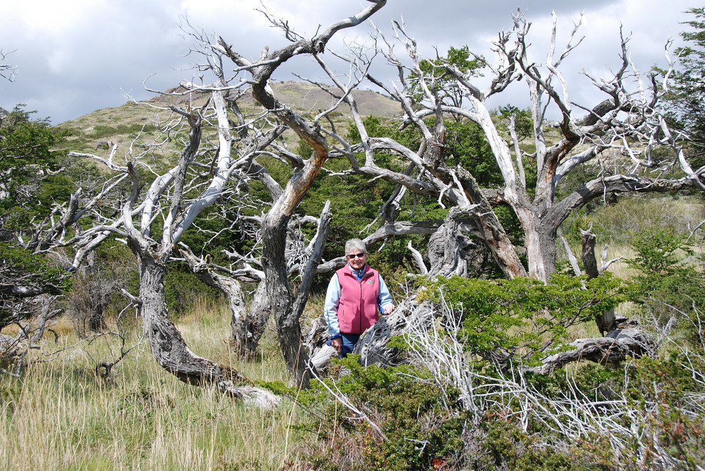 After about 30 minutes of walking in the forest, the path took us into the open and we found that we had already climbed fairly high from where we had started. Below us we could see the Lago Pehoe’ campground and absolutely breathtaking views of Lago Pehoe’ and the surrounding mountains. My words will do the sight no justice, you just have to see them yourself to believe it. The pictures you will see here, really don’t come close to the absolute stark beauty of the scene.