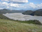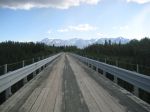 The “highway” was indeed gravel for all but 24 of its 135 miles, but it was nearly free of any traffic. As we rode along, we really could have used clamps to keep our hanging jaws shut as we were awed by one after another beautiful view or scene. Mountains rose from vast plains covered in spruce. The air was so clear you could see that the trees went on miles and miles until they reached the soaring mountains covered in snow.