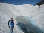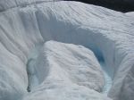 It was therefore an even greater treat to walk upon the Root Glacier for a 4 hour guided trek, where we found the glaciers not only to be beautiful, but alive. As we approached, the scene was a bit lunar like as the surface was grey and rocky with the murrain that the glacier had removed as it traveled along the mountain’s sides. However, as we made it to the top, the surface glinted and gleamed under our crampons as we walked up the side. As we crested the first peak of the glacier and investigated its surface, we saw that it indeed had the attributes of a living being. There were streams that twisted and turned, ponds of bright blue and dark azure, deep crevices and soaring ridges, all located on the body of this single glacier and all viewable during this short hike. Amazing. We stopped for a short lunch from a ridge overlooking a bright blue pond and sooner than we knew it, it was time to leave. Having been on the glacier only 4 hours, we felt cheated but at the same time honored to have witnessed its power and beauty so close and at such a personal level.