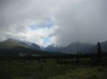 We continued our way towards Cantwell in a dreary overcast, hoping that the cloud cover would lift a bit so we could see Mt. McKinley in all its glory, but persistent rain showers pestered us as we moved north. Although at times the clouds did appear to break a bit, they never fully opened and we did not get to see McKinley. But as the day progressed, it did brighten and we were treated to some breathtaking scenery.