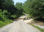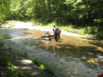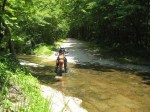 Our little jaunt over, it was time to get going. As we rode the narrow gravel, we started seeing the first signs of water crossings. Small slabs of concrete had been poured over narrow creek beds. Most were less than 100 feet wide with a one inch deep flow of water lazily crossing half the width of the concrete. We straight lined most of them and before long, we got cocky. Once again, we started enjoying ourselves and Tracy and MaryLee quickly vanished into the distance while Kim and I dawdled along enjoying the green canopy that surrounded us.