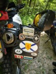 After about the 6th “honk”, the bull slowly walked to the side of the road and stared into the brush. MaryLee took off in a flash and was past. Kim and I revved our engines, I engaged the clutch and… stalled my bike. Great! I immediately pushed the starter button and… silence. My battery was now dead, it had given up but we hadn’t. I kick started the bike furiously and it caught on the fifth or sixth kick and we were off.